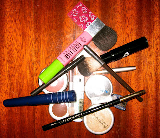 Clara utmanade några töser att visa upp sin sminkväska. Gullig som hon är var jag en av dem :) Jag är tyvärr rädd att jag kommer att göra henne besviken då smink inte intresserar mig så mycket och jag använder yttest lite,och då enbart till utgång och fest typ. Och jag är ju en sån trist typ att jag sällan går ut och fester är det bara jag (och mitt jobb) som är bra på att ordna så det blir inte så många såna :) Men så här ser den ut som jag använder då: